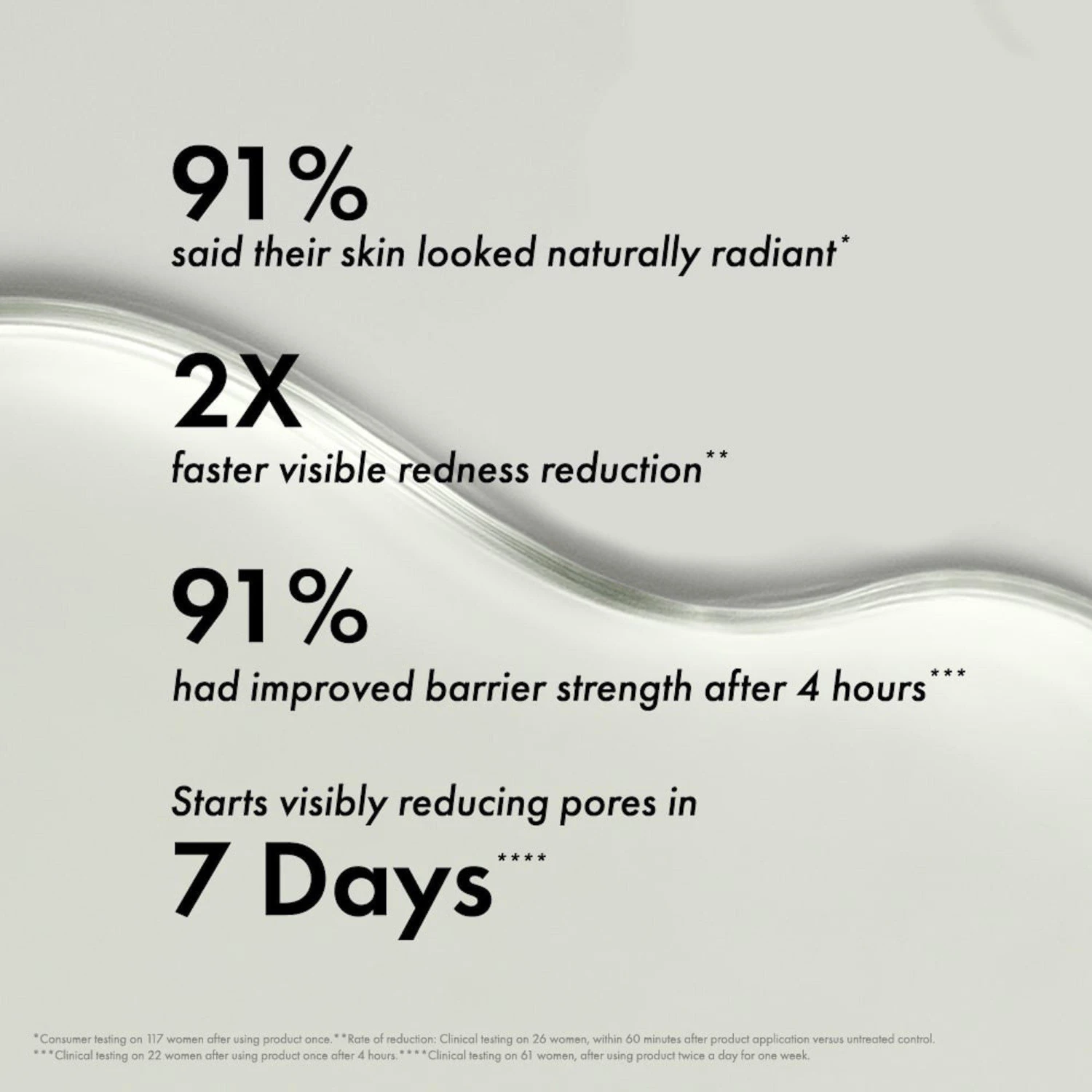 - 91% said their skin looked naturally radiant* *Consumer testing on 117 women, after using product once.