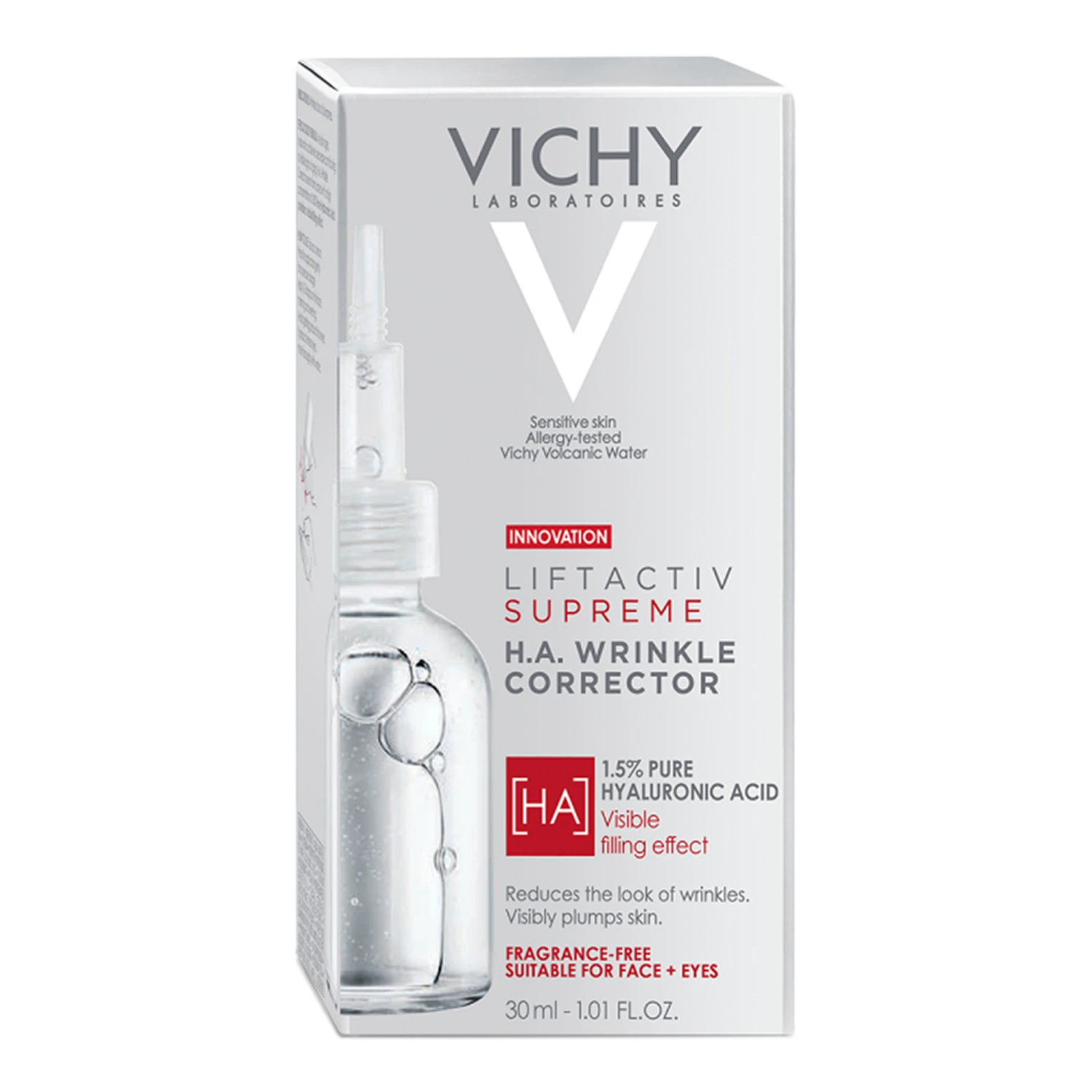 - 1.5% pure Hyaluronic Acid instantly plumps the skin to visibly reduce wrinkles and fine lines